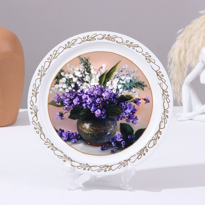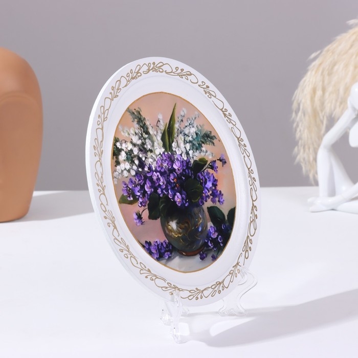 Панно-тарелка «Сирень в вазе», белая, D = 20 см, лаковая миниатюра
