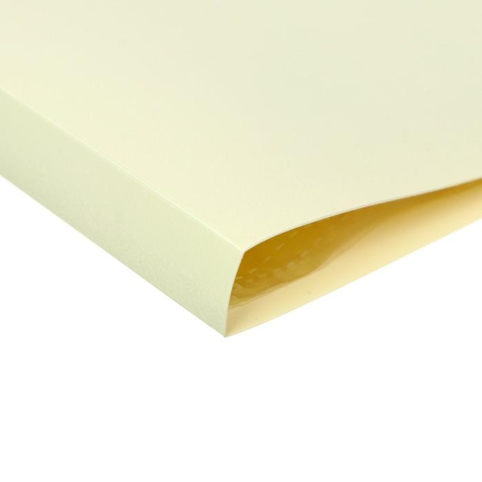 - Папка изготовлена из качественного пластика толщиной 0,5 мм с антибликовой фактурой, а ширина корешка составляет 15 мм.