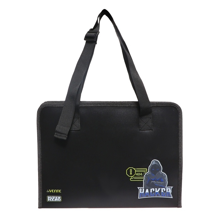 Папка с ручками текстиль А4, 30 мм 340 х 250 deVENTE SuperHero, карман-сетка, регулирующие ручки. При раскладывании помещает лист А3
