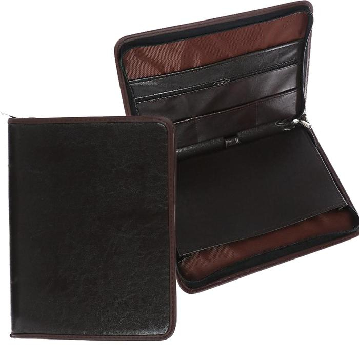 Представительная деловая папка на молнии.Изготовлена К/З Люкс.Размер изделия 275 на 370 мм. Толщина папки 30 мм.Внутри расположено удобных, вместительных 2 кармана плюс карман на молнии и 3 кармашка под визитки.