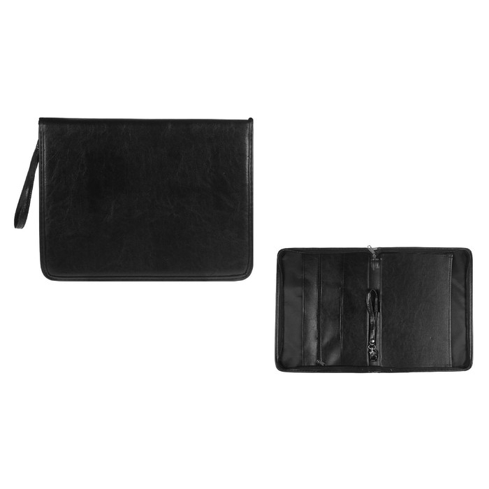 Пaпка деловая, искусственная кожа, для бумаг, 360 х 260 х 30 мм, 6Д041 "Люкс", чёрная (ручка-петля)
