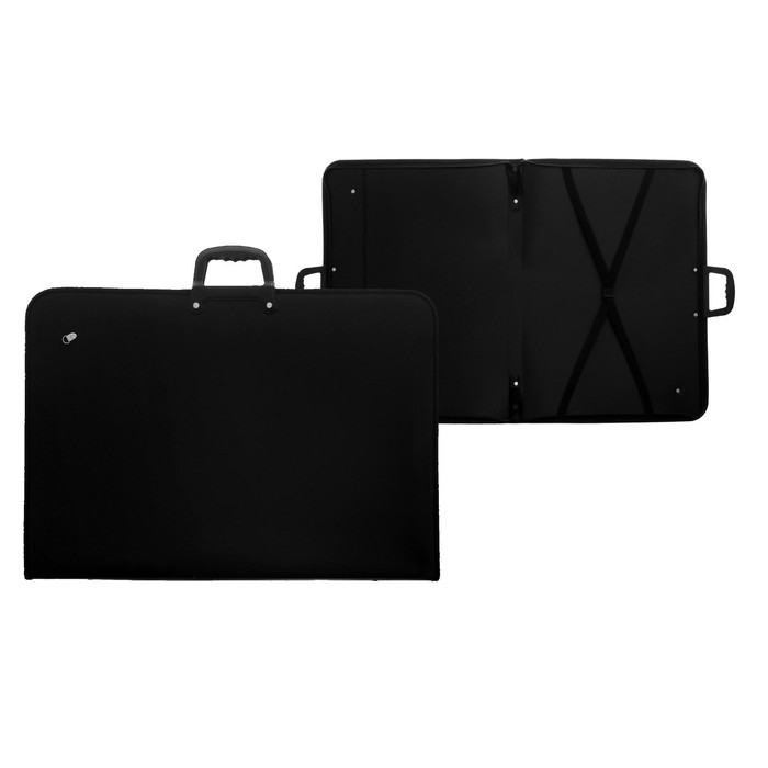 Папка для чертежей и рисунков A1 (850 х 600 х 30 мм) пластиковая, на молнии с трех сторон, с внутренним карманом, с внутренними удерживающими резинками на пряжке, с регулируемым ремнем через плечо, с пластиковыми ручками, чёрная