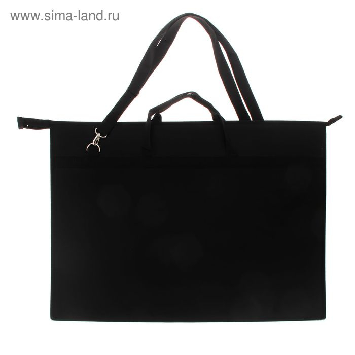 Папка для чертежей и рисунков А2, 650 х 480 х 50 мм, с ручками, пластиковая, молния сверху, Оникс, ПР 6, 0.9 мм, плечевой ремень, чёрная