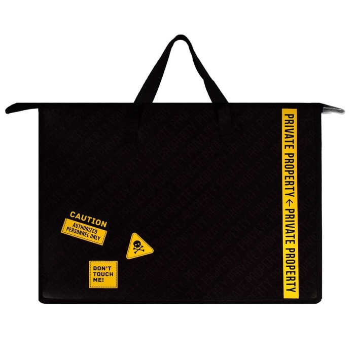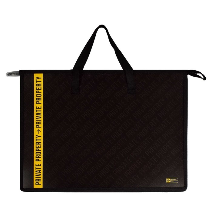 Папка для чертежей и рисунков. ЧАСТНАЯ СОБСТВЕННОСТЬ. Формат А3. Размер: 45x33х9 см. Материал: полипропилен. Толщина: 500 мкм. Количество отделений - 1 отделение (-я). Тип застёжки: молния. Отделка: УФ-печать. Цвет: чёрный. Особенности: внутренний ПВХ карман, дно с расширением, текстильные ручки. Индивидуальная упаковка: ПЭТ-пакет.