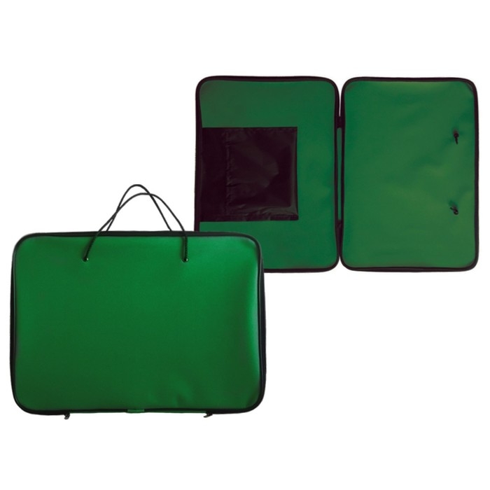 Папка для чертежей и рисунков А3, 470 х 340 х 20 мм, с ручками, с внутренним карманом, текстиль, 1Ш32 "Творчество" зелёная