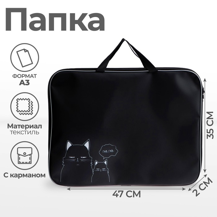 Папка для чертежей и рисунков А3, 470 х 350 х 20 мм, с ручками, текстильная, Calligrata "Коты"