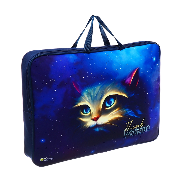 Папка для чертежей и рисунков А3, 470 х 350 х 75 мм, с ручками, текстильная, ПМД 3-20-4 "Магия кота" (тесьма) 71725