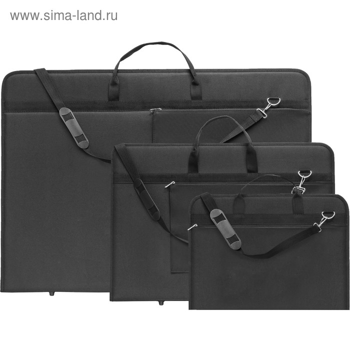 Папка для чертежей и рисунков для художников А3, 450 х 320 х 30 мм, с ручками, каркасная, текстильная, с карманом, чёрная, Estado