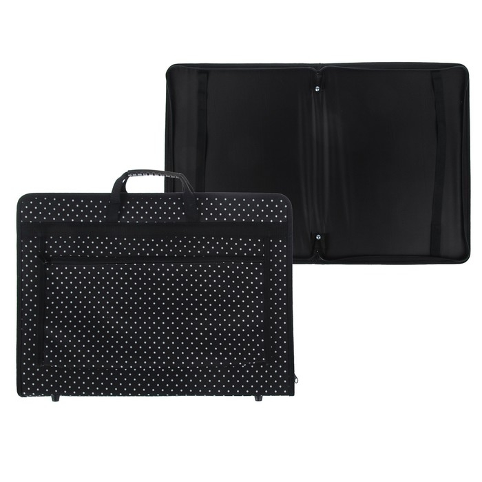Папка для чертежей и рисунков для художников А3, 470 х 350 х 40 мм, с ручками, каркасная, текстильная, "Вдохновение" 2В31, с внешним карманом, белый горох