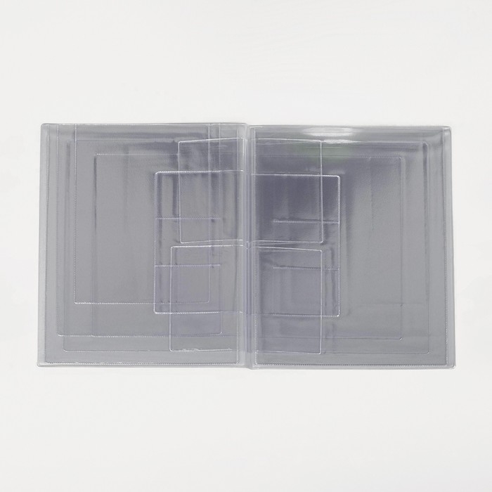 6-7я страница: 3 отдела для пластиковых карт размером 9 × 6 см.