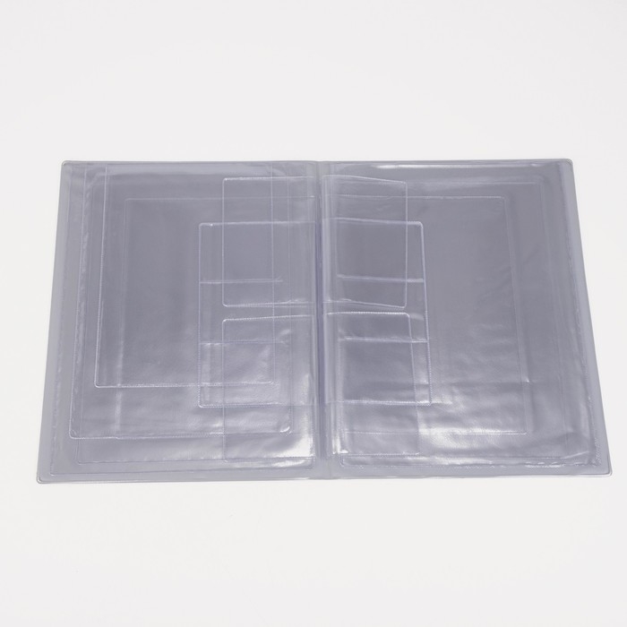 6-7я страница: 3 отдела для пластиковых карт размером 9 × 6 см.