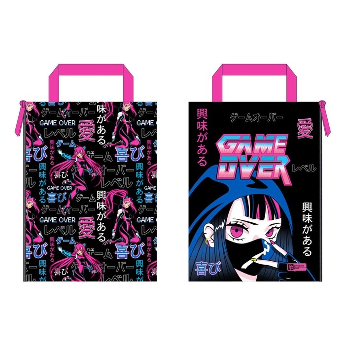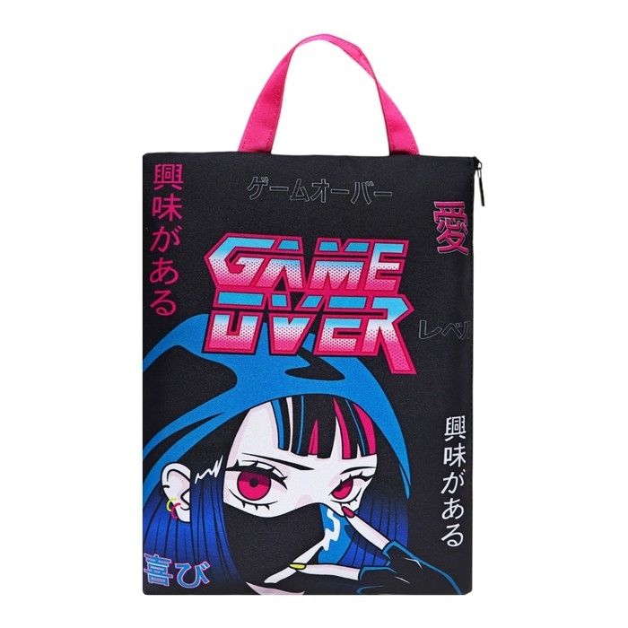 Папка для тетрадей А4, 330 х 250 х 10 мм, молнии сверху, с ручкой, текстильная, Феникс+ "Кибераниме"