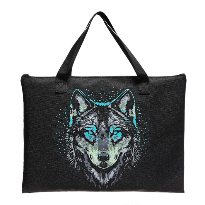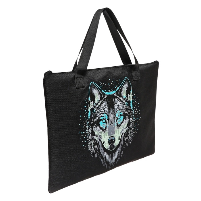 Папка для тетрадей А4, молния сверху, плоская, текстильная, Colorio "Волк"