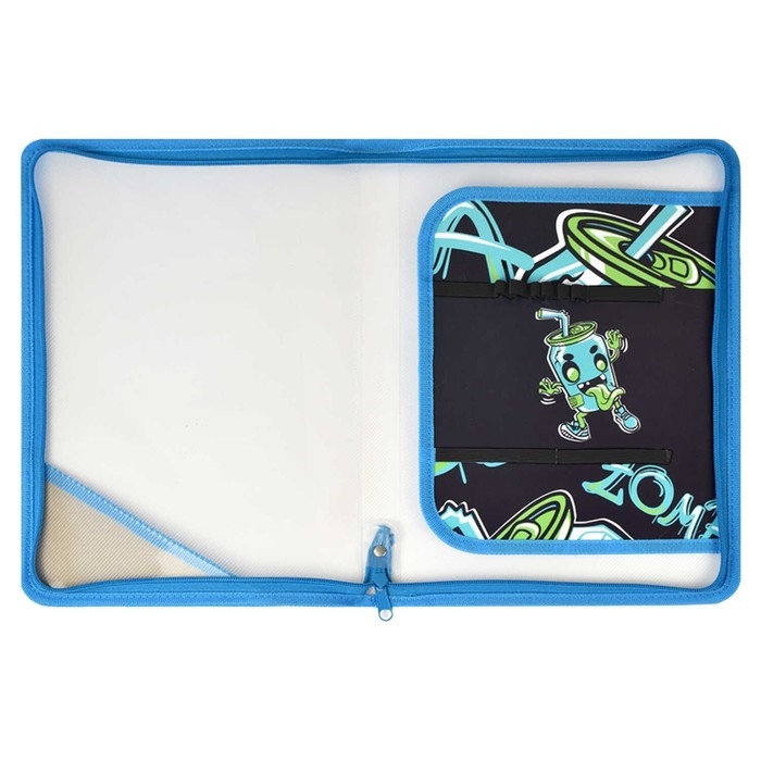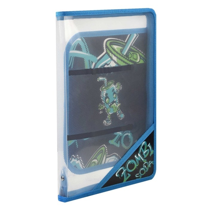 Папка для труда А4, 328 х 228 х 25 мм, молния вокруг, откидная планка, пластиковая, Феникс "Зомбо банка"