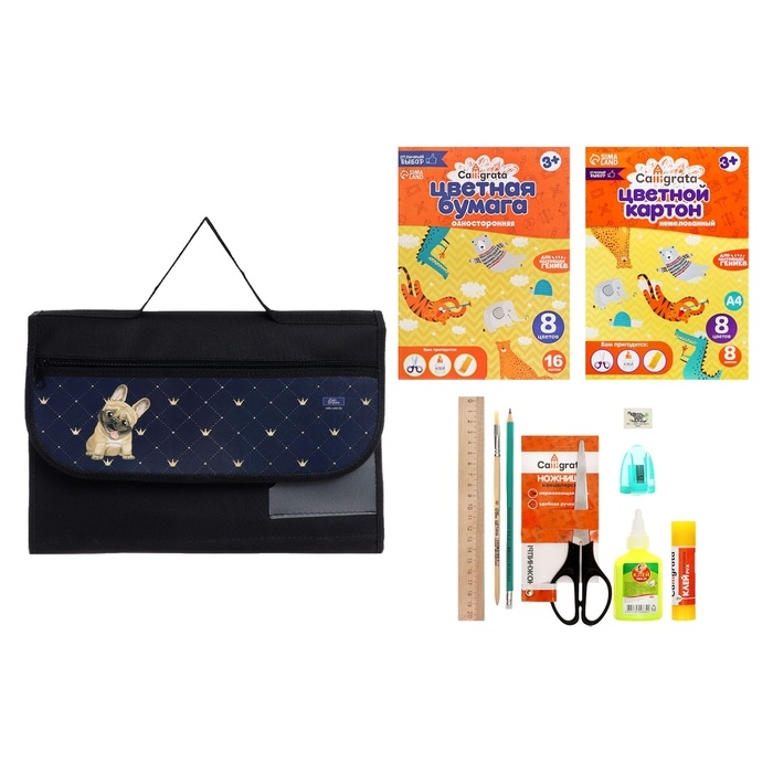 Папка для труда А4, 330 х 230, с ручками текстиль, раскладная на липучке, с наполнением 10 предметов, Calligrata, ПТР-10, "Бульдог"