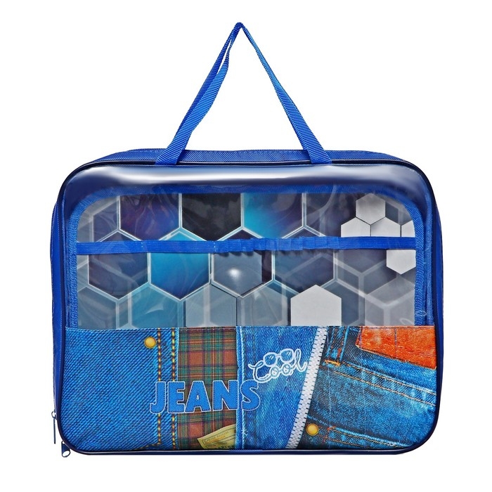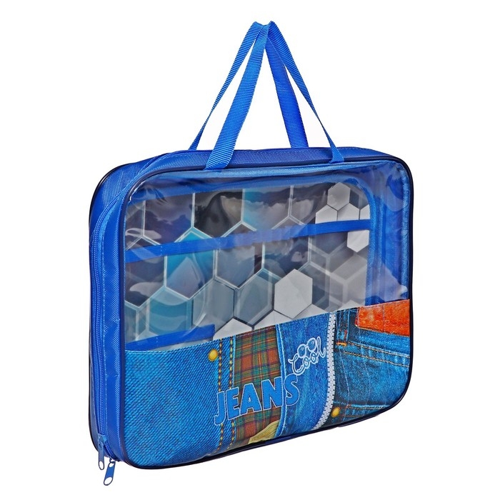 Папка для труда А4, 335 х 260 х 60, с ручками текстиль ПВХ, ПТР-111 "COOL JEANS"