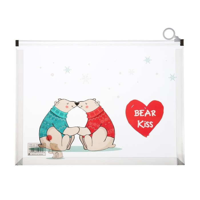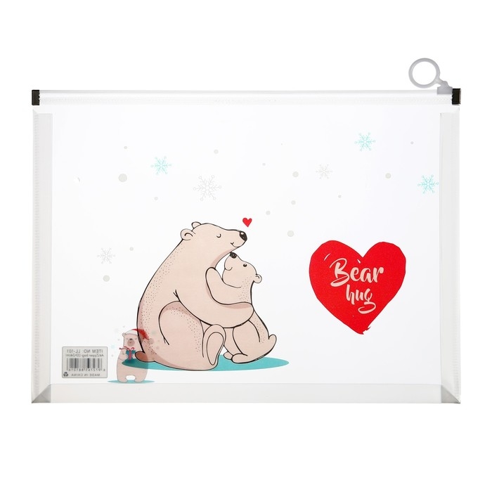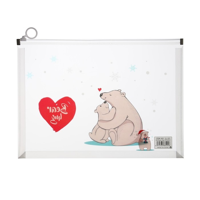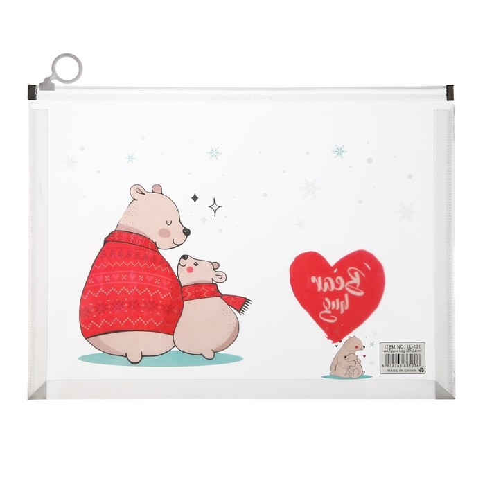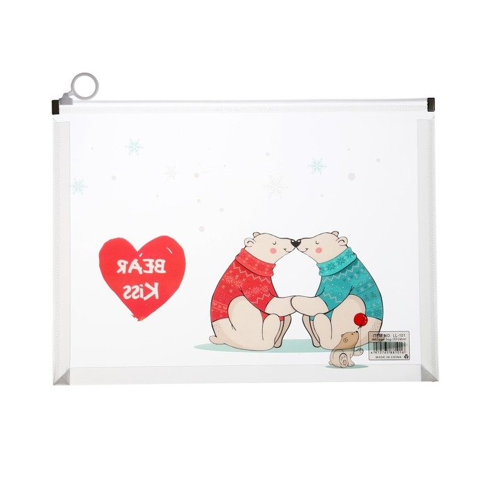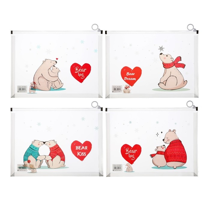 Папка-конверт на молнии формат А4, 180мкр, с рисунком "Медведи", МИКС
