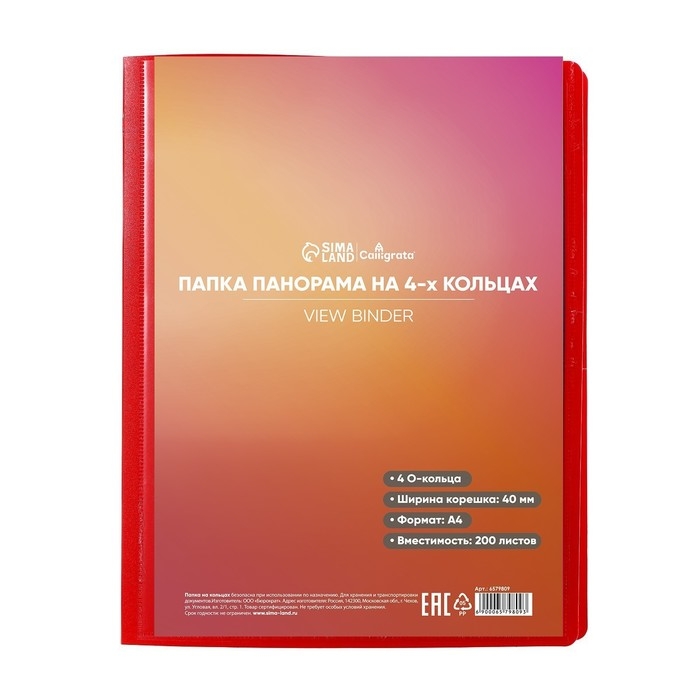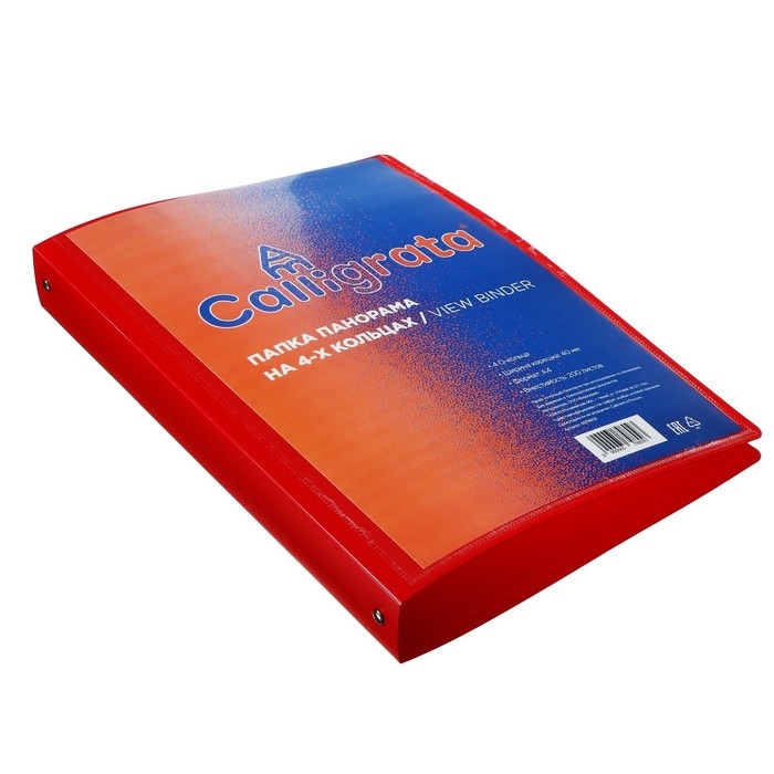 Папка на 4 кольцах А4, Calligrata "Панорама", 40 мм, 700 мкм, лицевой карман, красная, МИКС