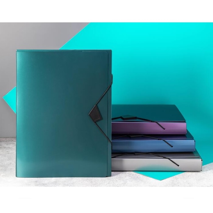 Папка на резинке А4, 800 мкм, Calligrata TOP "Mistral", корешок 40 мм, до 300 листов, зелёный металлик