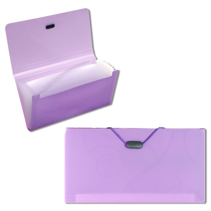 Папка на резинке А65, 12 отделений, узоры, фиолетовая пастель
