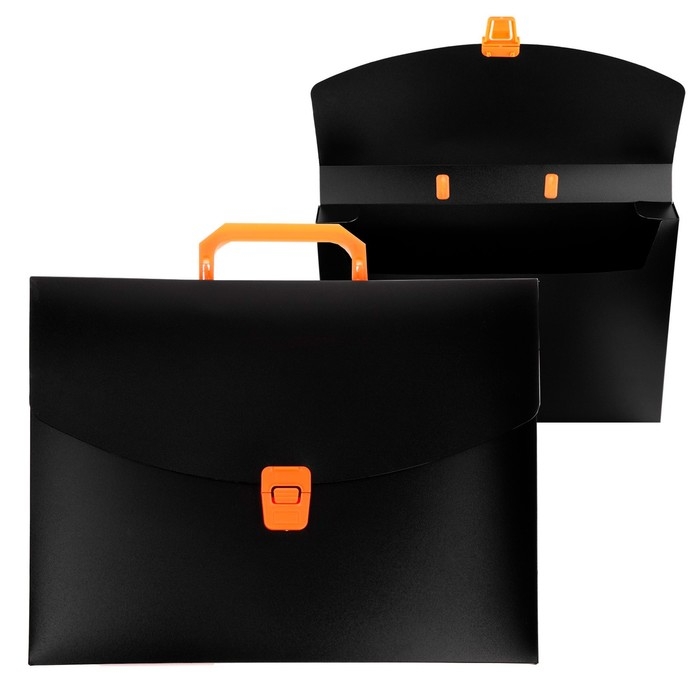Папка портфель А4, 700 мкм, 1 отделение, Calligrata, чёрный с оранжевыми элементами отделки