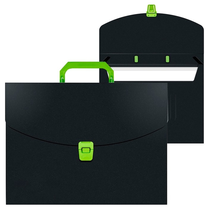 Папка портфель А4, 700 мкм, 1 отделение, Calligrata, чёрный с салатовым