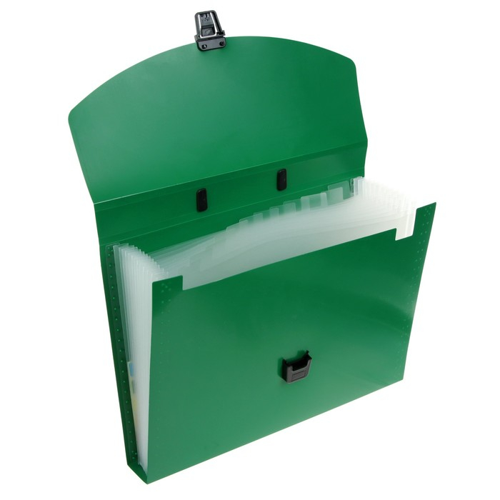 Папка-портфель А4 Calligrata, 13 отделений, 700 мкм, до 300 листов, зелёная