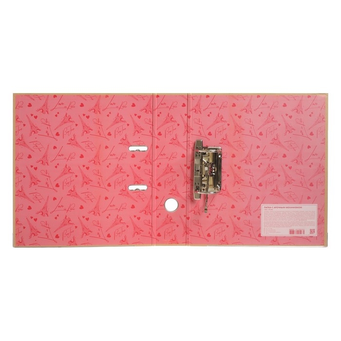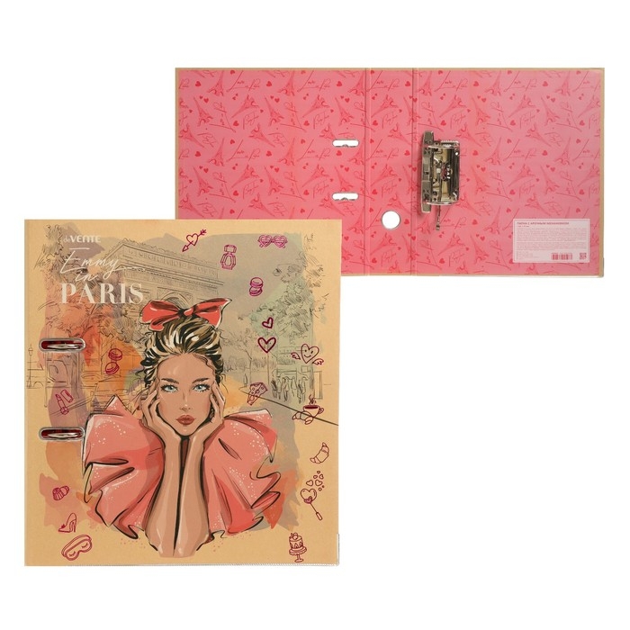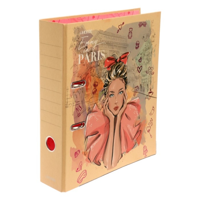 Папка с арочным механизмом "deVENTE. Emmy in Paris" A4 75 мм картонная разобранная, крафт бумага, цветная запечатка, тиснение фольгой, металлическая окантовка, цветная запечатка форзаца, индивидуальная упаковка.