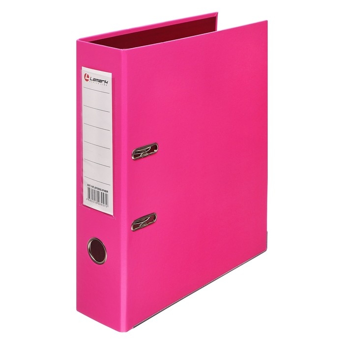 Папка-регистратор А4, 75 мм, Lamark, ПВХ, двухстороннее покрытие, металлическая окантовка, карман на корешок, собранная, розовый/бордовый