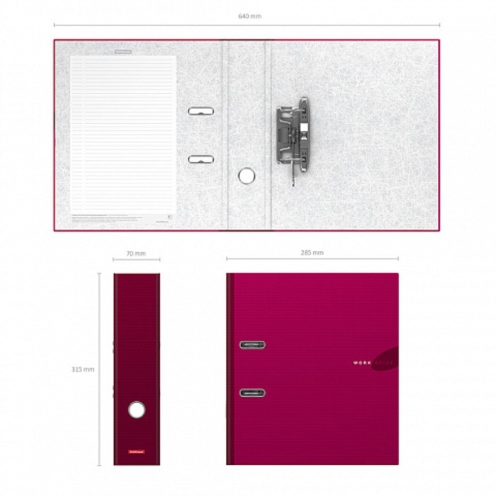 Папка-регистратор А4, ErichKrause Work Inside, 70 мм, собранный, ламинированный, картон 2 мм, бордовый