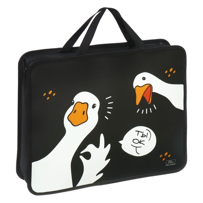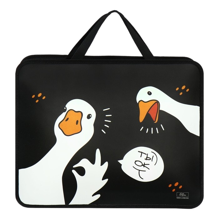 Папка с ручками А4, 330 х 260 х 75 мм, пластиковая, ручки-тесьма, Calligrata "Гуси"