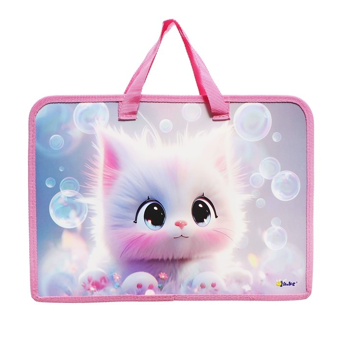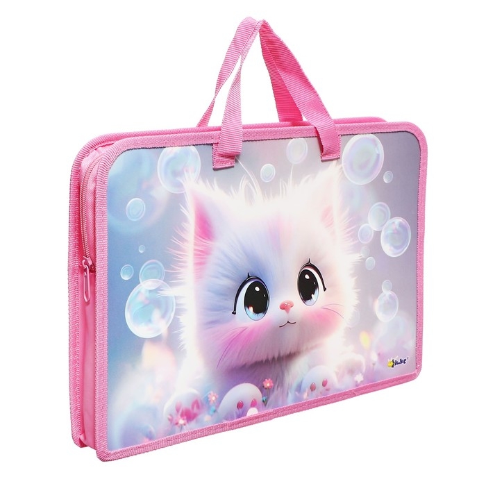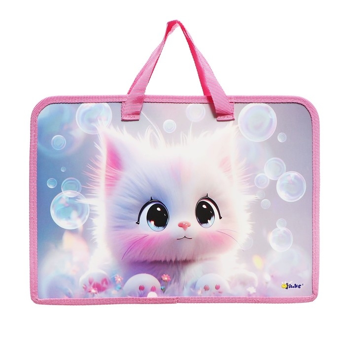Папка с ручками А4, 340 х 245 х 45 мм, пластиковая, ручки-тесьма, Оникс ПТ-14 "Котик аниме"