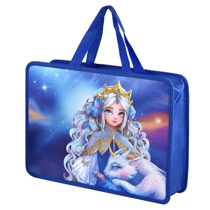 Папка с ручками А4, 340 х 250 х 95 мм, пластиковая, ручки-тесьма, Феникс "Принцесса с драконом"