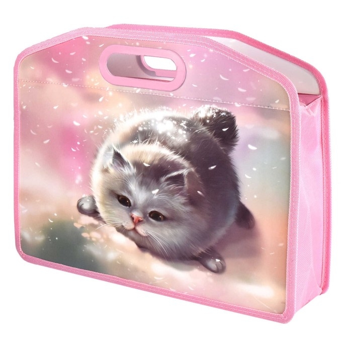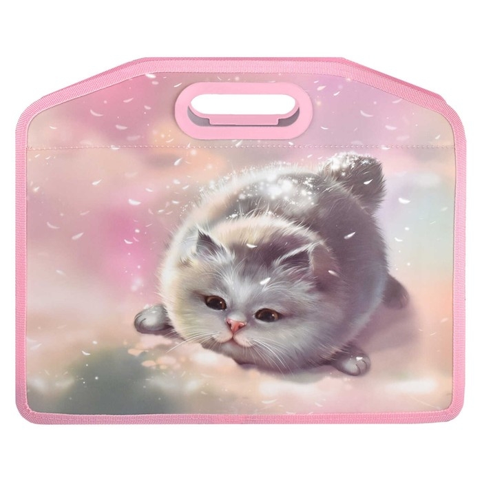 Папка с ручками пластиковая А4, 370 х 300 х 110 мм, с вырубной ручкой, Феникс "Кот"