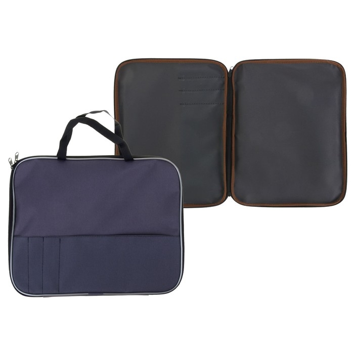 Папка с ручками текстиль А4, 350 х 275мм, Офис, ПДМ-4, внешний карман, серая