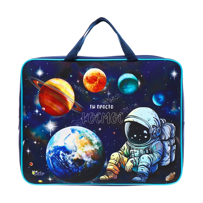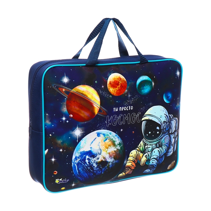 Папка с ручками текстиль А4 75мм 350*265 ПМД 4-20 мал Планеты и космонавт (руч-тесьма) 71681 1032785