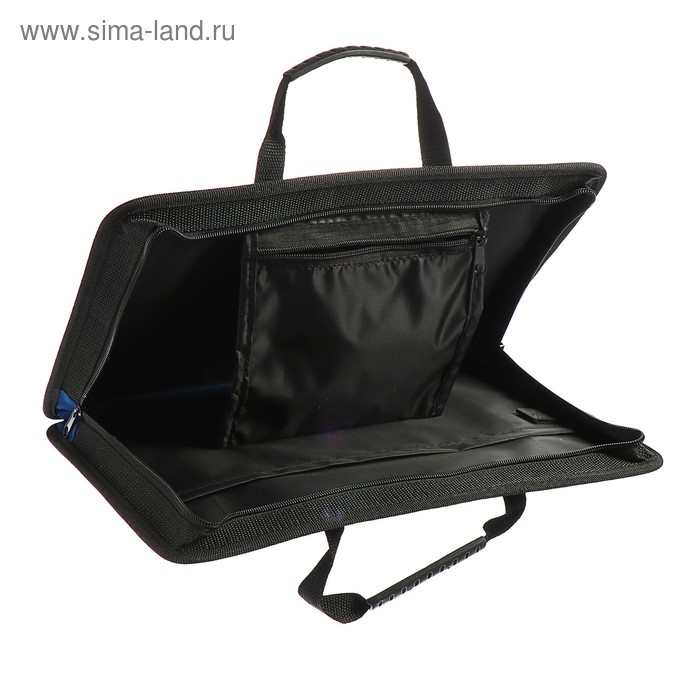 Портфель ЛугаА4 формат, размер 365*260Изготовлен из ткани синего цвета 1 - отделениеВнутри 1 карман, плюс 1 карман на молнии, петля для крепления ручки.Ручки изготовлены из тесьмы с прорезиненным элементом , надежно закреплены поперечной планкой.Закрывается на молнию, расположенной с трех сторон.На молнии для удобства открытия, расположено два замка.
