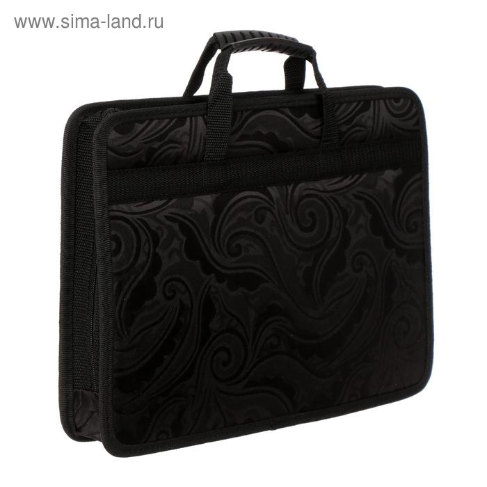 Папка с ручками текстильная, А4, 365 х 260 х 50 мм, 2С13 "Тихвин", каркасная, "Жакард чёрный"