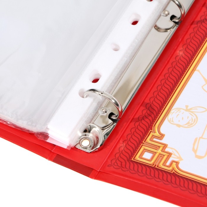 В набор входит: папка на кольцах и 13 односторонних листов-разделителей (мелованная бумага 157 гр/кв.м). Обложка выполнена из переплетного картона плотностью 1,5 мм, внутри есть четыре кольца, на которые следует цеплять файлы.
