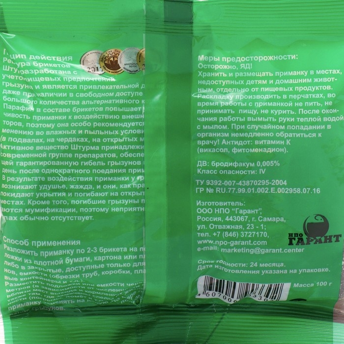 Парафинированные брикеты от грызунов Штурм, пакет 100 г