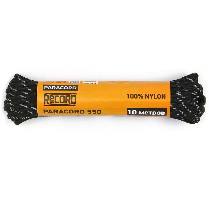 Паракорд 550 светоотражающий, нейлон, черный, d - 4 мм, 10 м