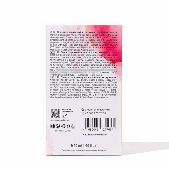 Откройте для себя увлекательный мир нашей женской парфюмерной воды "99 Chance", вдохновленной элегантным ароматом L'Imperatrice.