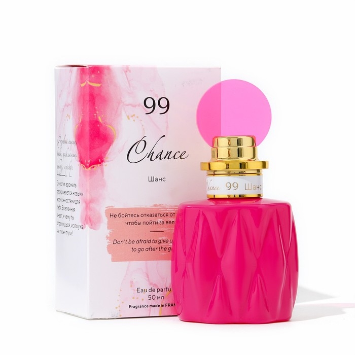 "99 Chance" — это аромат для женщин, стремящихся к вечной женственности и утонченности. Позвольте этому аромату подчеркнуть вашу уникальность и добавить в вашу жизнь чувственную гармонию.