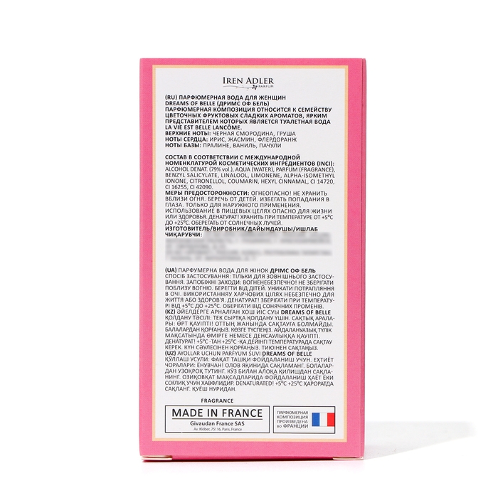 В завершающем аккорде базовые ноты ванили, бобов тонка, пачули и пралине создают теплый и сладкий след. Это восхитительное сочетание придаст вашему образу нотку роскоши и шарма. "Dreams of Belle" призвана быть воплощением вашей индивидуальности и элегантности, делая каждый ваш день особенным и неповторимым.