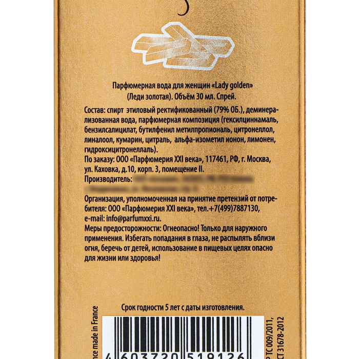 Парфюмерная вода женская Lady Golden, 30 мл