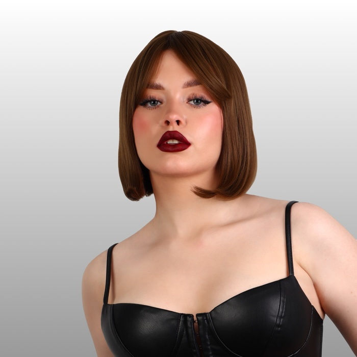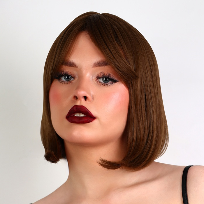 Парик искусственный, с чёлкой, каре, имитация кожи, 16 см, 160 гр, цвет каштановый