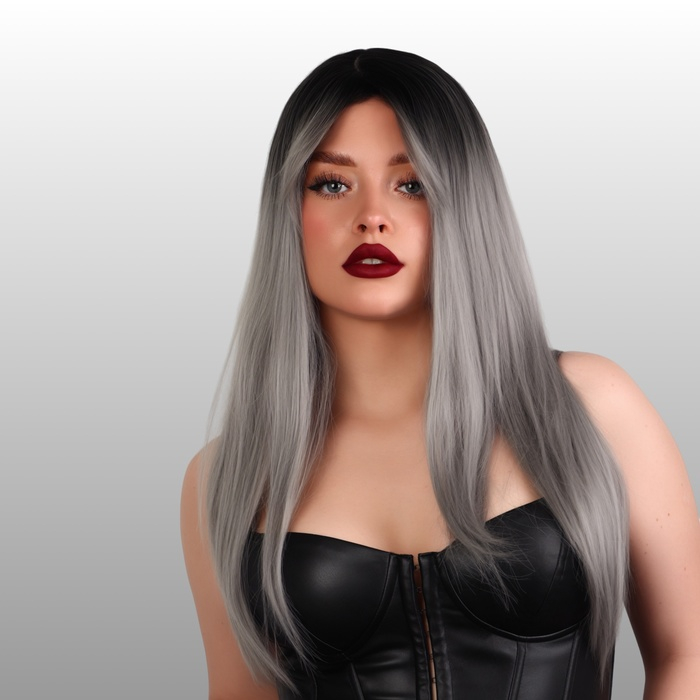 Парик искусственный, с чёлкой, имитация кожи, 60 см, цвет чёрный/пепельный