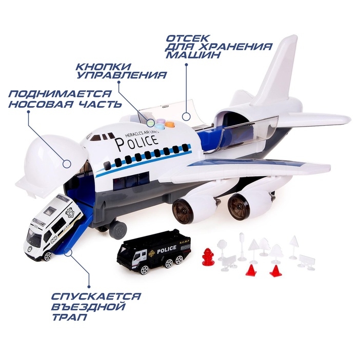 Парковка «Полицейский самолет», с машинками, световые и звуковые эффекты