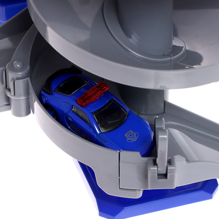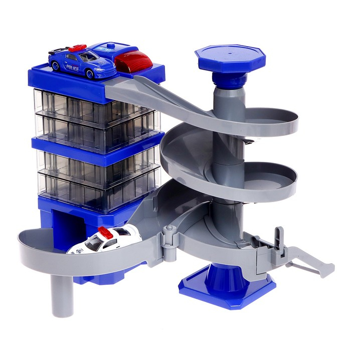 Парковка «Полицейский участок» вместит все любимые машинки ребёнка. Транспортный комплекс оборудован спецсигналами, которые светятся и издают звук. В комплекте есть 2 машинки. Для быстрого выезда предусмотрено сразу два покатых спуска.
