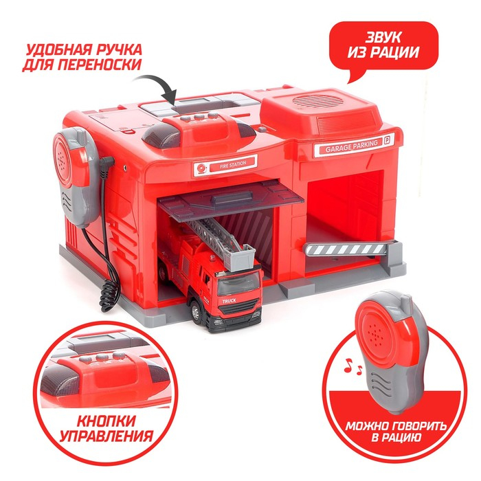 Парковка «Пожарная часть» с машинкой и рацией, световые и звуковые эффекты, МИКС